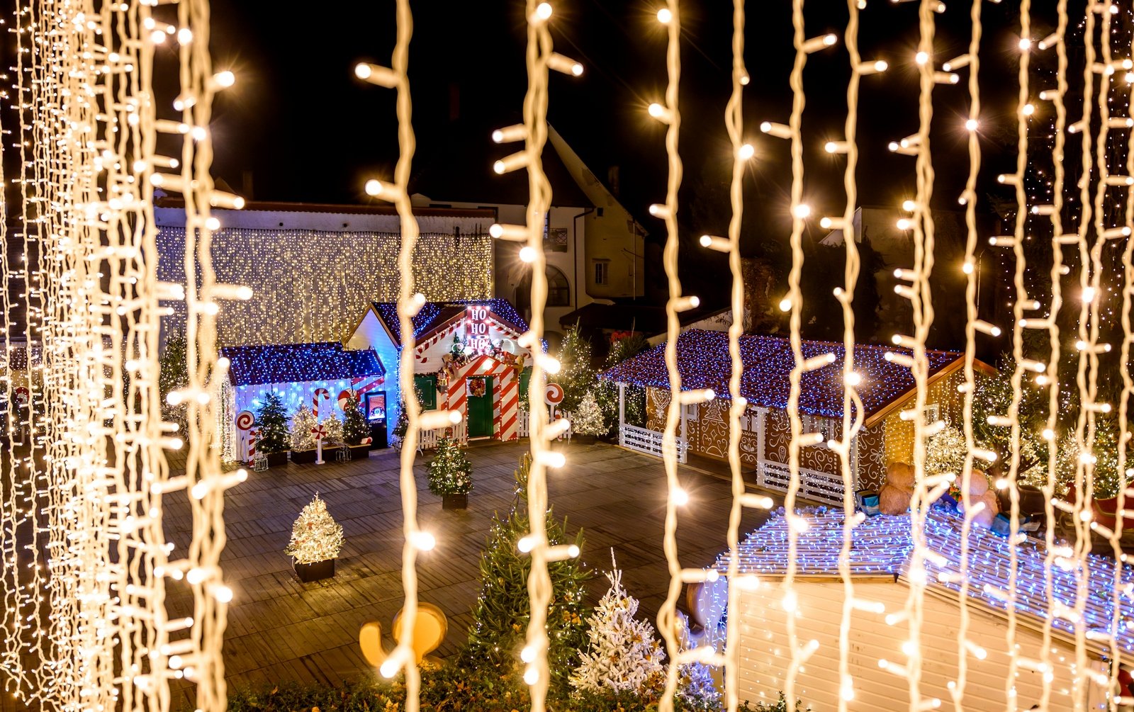 Hier erwarten Sie sechs thematisch gestaltete Häuschen, bewohnt von verspielten Elfen, Frau Weihnachtsmann und sogar dem schelmischen Grinch, der in seiner Höhle lauert.