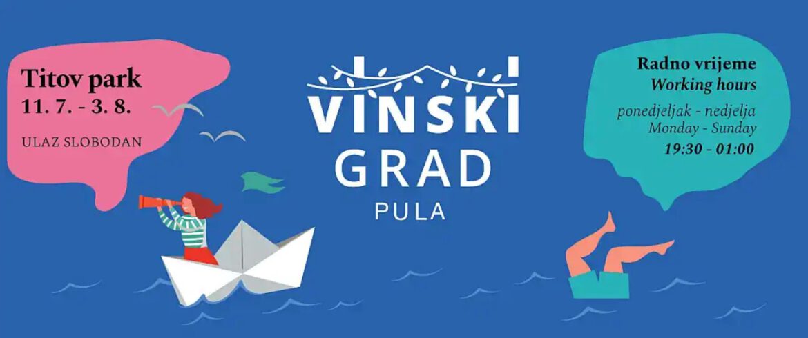 Vom 11. Juli bis 3. August wird der Tito-Park wieder zum Zentrum der sommerlichen Weinszene. Die grüne Stadtoase in Pula ist Heimat der Wine City , einem Festival, das sich Spitzenweinen, entspannter Atmosphäre und unvergesslichen Abenden unter Flutlicht widmet. Jeden Abend von 19:30 bis 1:00 Uhr erwartet die Besucher eine große Auswahl an Weinen, Cocktails und Speisen – zu Aktionspreisen und mit zahlreichen Weinsorten aus Kroatien und dem Ausland.